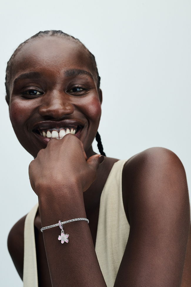 Koleksiyonun imza tasarımlarından Kiraz Çiçeği Sallantılı Charm, baharın ilk işaretlerini stilin ince bir detayına dönüştürüyor. Elle uygulanan pembe ve beyaz mine detayları ile pembe kübik zirkon taşların ışıltısı tasarıma özel bir dokunuş katarken, hareketli yaprak formu doğal bir dinamizm yaratıyor. Serinin küpe ve yüzük modelleriyle birlikte kullanılan tasarımları, romantik ve modern bir görünüm sunuyor.