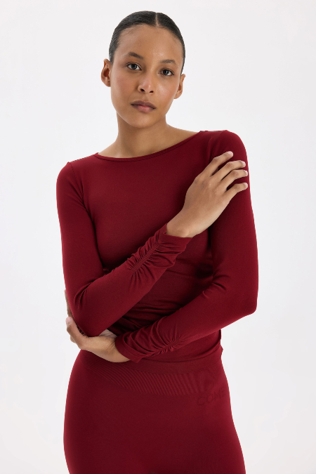 Sevgililer Günü için öne çıkan bir diğer hediye seçeneği ise Scarlet Kırmızısı Kolları ve Yanları Büzgülü Uzun Kollu Spor Üst. Enerjik ve cesur rengiyle dikkat çeken bu tasarım, yumuşak ve nefes alabilir kumaşı sayesinde vücudu nazikçe sararak gün boyu konfor ve ferahlık sunuyor. Modelin hem kollarda hem de yan hatlarda yer alan büzgü detayları, dikişsiz özel örgü yapısıyla oluşturulmuş olup kumaşın esnekliğini korurken ciltle mükemmel bir uyum sağlıyor.
