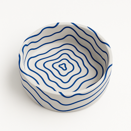 İzohips Koleksiyonu, ilhamını topografik haritalardan alıyor. Yüzeydeki her kıvrım ve çizgi, yalnızca coğrafi yükseltileri değil; zaman içinde biriken anıları, duyguları ve katmanları temsil ediyor. Katmanlı yüzey dili, mekâna hem görsel bir derinlik hem de kavramsal bir zenginlik kazandırıyor. Her parça, tıpkı bir arazi kesiti gibi, geçmişin izlerini bugüne taşıyan bir hafıza nesnesi olarak kurgulanıyor.