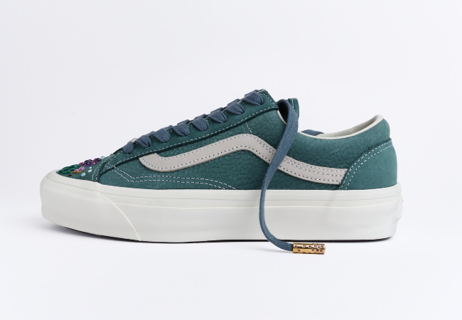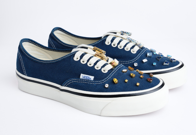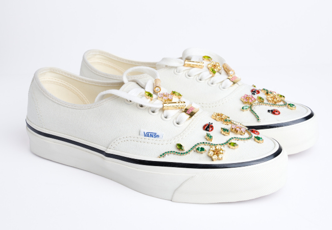 Her bir çift; gümüşten elde üretilmiş, sarı altın kaplama ve safir, topaz, opal, sitrin, malakit ve pırlantalarla süslenmiş özel mine bağcık aksesuarlarına sahip. Bu detaylar, klasik Vans formlarına malzeme zenginliği ve yüksek işçilik katıyor.